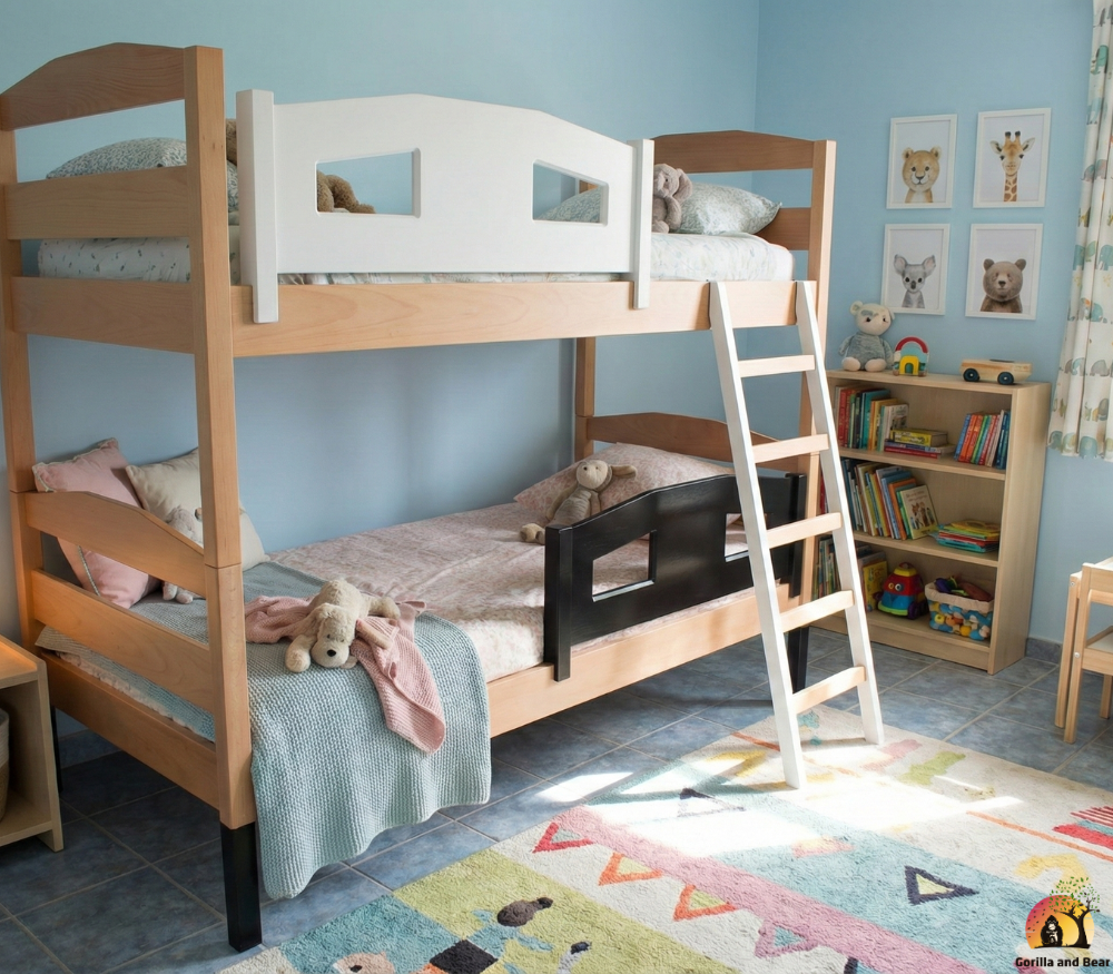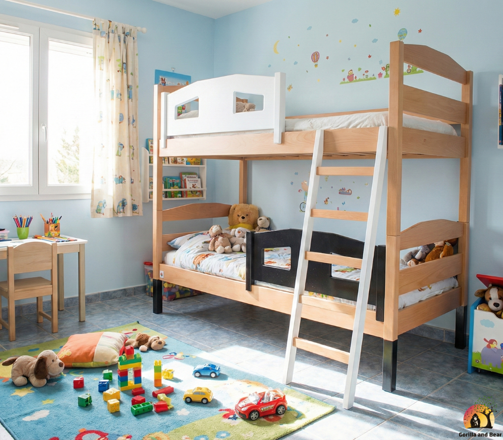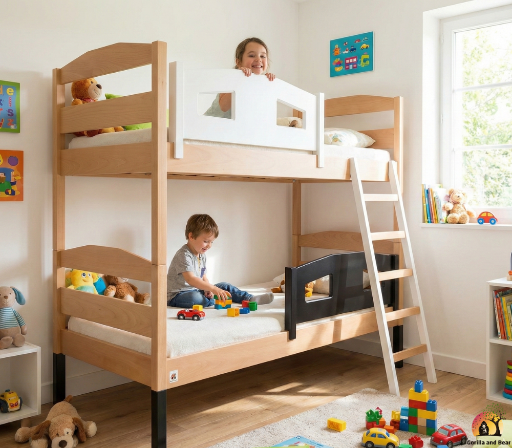 Etagenbett Dominic repräsentiert die Vielfalt und Qualität von GorillaandBear.ch, der Marke für die Bedürfnisse von Familien. Neben innovativen Kinderbetten bietet die Marke eine breite Palette von Produkten, von Spielzeug, T-Shirt, Hoodies, Pyjamas, Body for baby bis hin zu Modeartikeln. GorillaandBear.ch ist somit nicht nur ein Einkaufsziel, sondern ein verlässlicher Partner für Familien, der Funktionalität und Stil in den Alltag bringt.