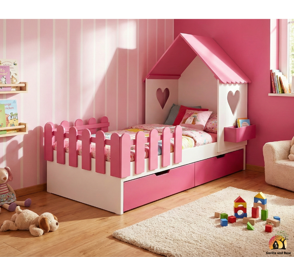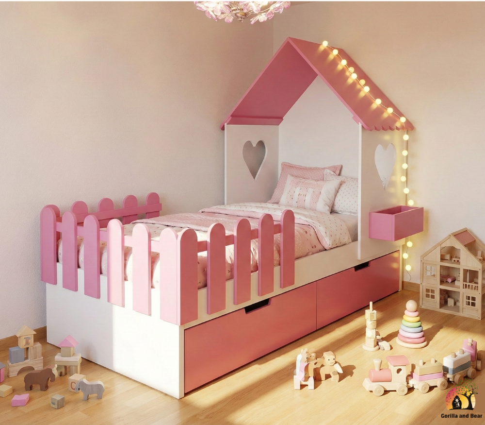 Hausbett Veronika repräsentiert die Philosophie von GorillaandBear.ch als umfassende Familienmarke. Neben hochwertigen Kinderbetten bietet die Marke eine breite Palette von Produkten, darunter Spielzeug, T-Shirt, Hoodies, Pyjamas, Body for baby Mode und mehr. GorillaandBear.ch ist somit nicht nur ein Online-Shop, sondern ein treuer Begleiter für Familien, der Qualität und Stil in den Alltag bringt.